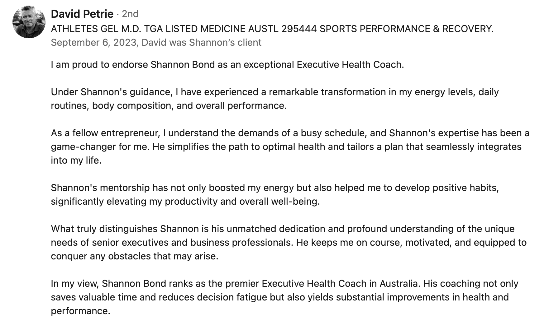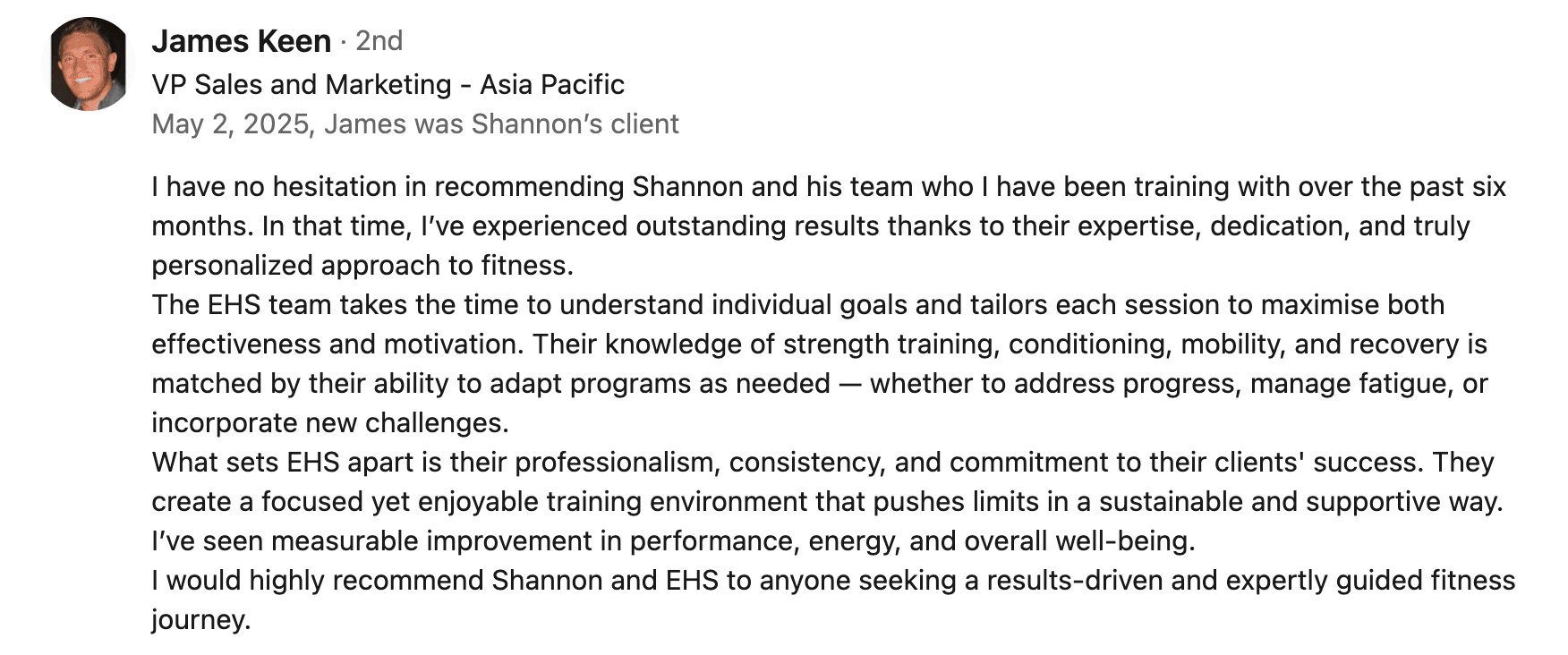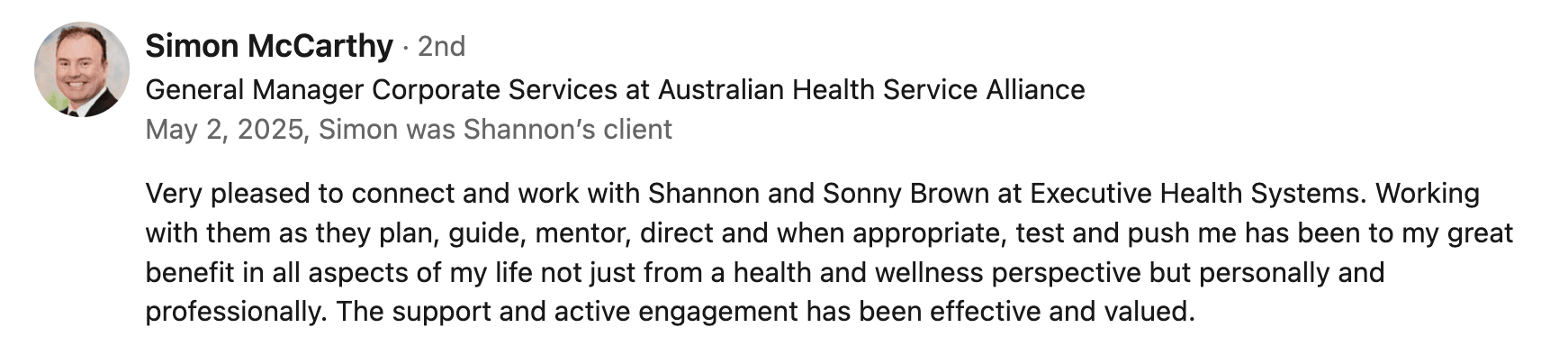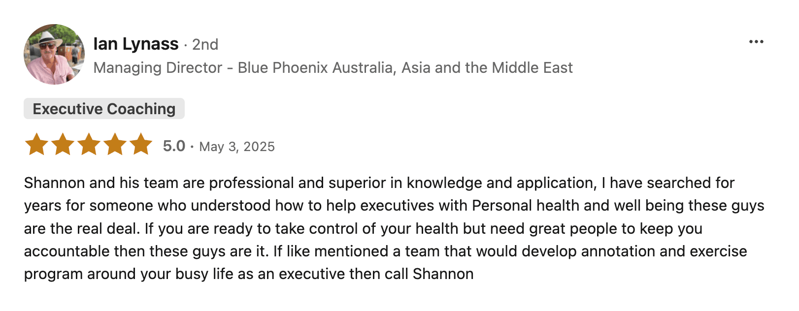Most people who buy fitness or health programs never follow through consistently. Our clients who get the best results are the ones who take ownership, follow their plan, and stay accountable. Health optimisation takes time, focus, and effort — there are no shortcuts.